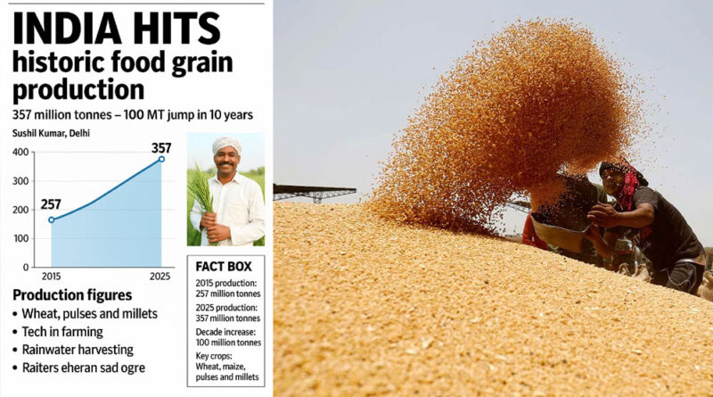 Read MoreIndia hits historic food grain production record of 357 mn tonnes, 100 MT jump in 10 years ಭಾರತವು 2025 ರಲ್ಲಿ