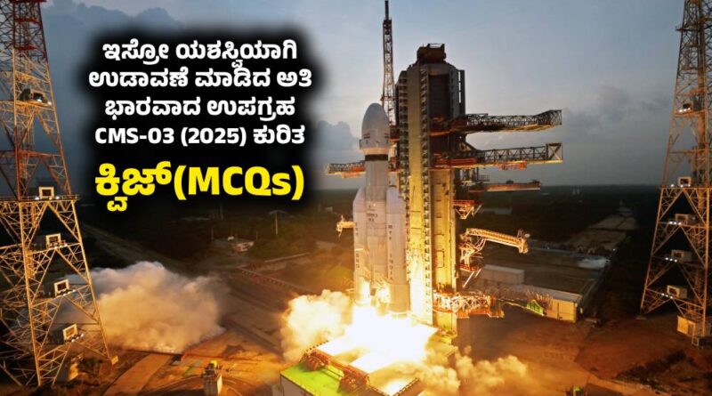 Read More1.CMS-03 (ISRO) ಉಪಗ್ರಹವನ್ನು ಯಾವ ದಿನಾಂಕದಲ್ಲಿ ಉಡಾವಣೆ ಮಾಡಲಾಯಿತು?A) 17 ಡಿಸೆಂಬರ್ 2020B) 2 ನವೆಂಬರ್ 2025C) 15 ಆಗಸ್ಟ್ 2024D) 1 ಜನವರಿ 2025 2.CMS-03